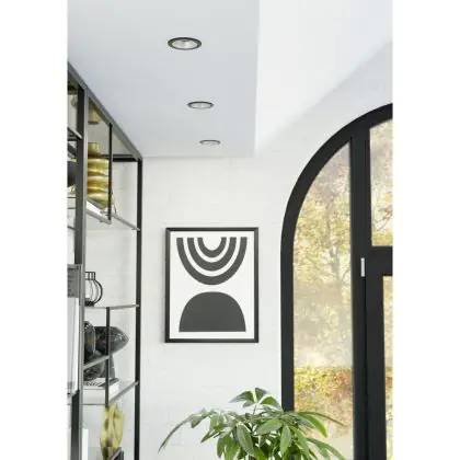 Descrizione Eglo Faretti LED Yebra-Z Plastica Nero Argento 4.9W 490lm - 827-865 Regolabile Bianca + RGB | 87mm - Ritaglio 68mm - IP20 - Zigbee Dimmerabile