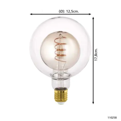 Descrizione Eglo LED Globe E27 Filamento Ambra 4W 200lm - 820 Bianco Molto Caldo | Dimmerabile - Sostitutiva 25W