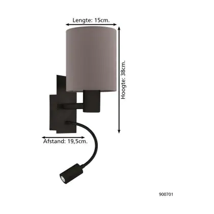 Eglo Luce Da Parete Pasteri Acciaio Nero | IP20 - Adatto per 1x E27