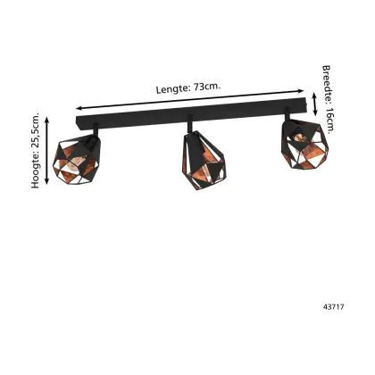 Eglo Luce da soffitto Carlton 7 Acciaio Nero Rame | IP20 - Adatto per 3x E27