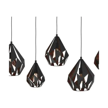 Eglo Luce Pendente Carlton 1 Acciaio Nero Rame | IP20 - Adatto per 6x E27
