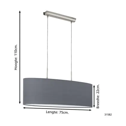 Eglo Luce Pendente Pasteri Acciaio Nichel Satinato | IP20 - Adatto per 2x E27
