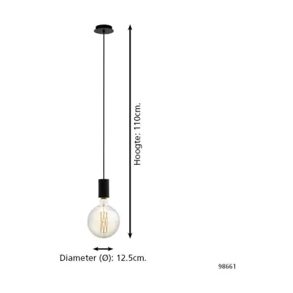 Eglo Luce Pendente Pozueta Acciaio Nero | IP20 - Adatto per 1x E27
