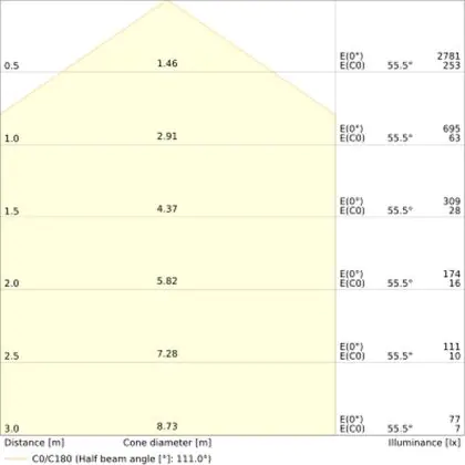 ![]() Il codice colore è una combinazione di resa cromatica (CRI) e colore della luce (Kelvin). La prima cifra indica la resa cromatica (1 = resa del colore molto bassa, 9 = massima resa del colore), mentre la seconda e la terza si riferiscono al colore della luce. Esempio: il codice colore 830 indica una buona resa cromatica (8) e luce bianca calda (3000K). |