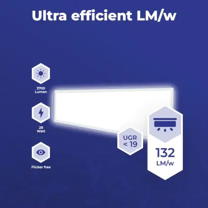 Questo pannello LED di Noxion ha dimensione 120x30cm, che lo rende perfetto da montare in un soffitto a griglia, ma può anche essere montato a superficie con degli accessori appositi. Inoltre consuma solo 28 W ma ha una potenza luminosa di 3700 lm, il che lo rende un perfetto sostituto dei tubi fluorescenti 2x36 W. I costi energetici saranno fino al 70% più bassi rispetto a un apparecchio convenzionale.