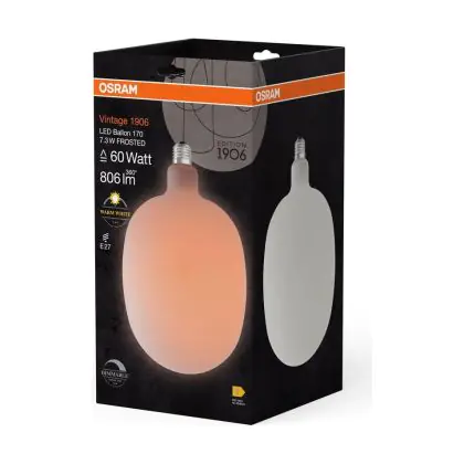 La Osram Vintage 1906 LED E27 Special Filamento Ghiaccio 7.3W 806lm - 827 Bianco Molto Caldo | Dimmerabile - Sostitutiva 60W è la perfetta sostituzione per la tua lampada convenzionale 60W con attacco E27 grazie alla sua tecnologia LED. Passare a LED ti offrirà tanti vantaggi!