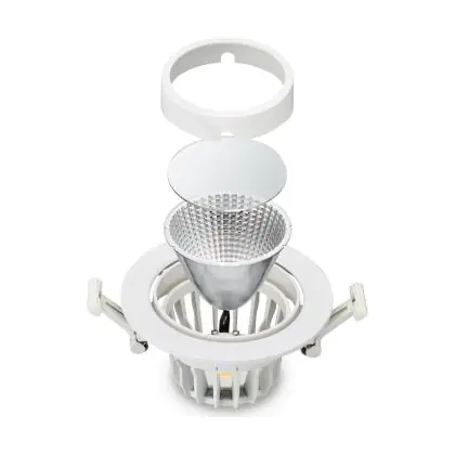 Un apparecchio con design inclinabile consente di dirigere l'illuminazione in modo specifico su un oggetto o una superficie. Ciò può rivestire un ruolo particolarmente importante nei negozi (mettendo in risalto una nuova collezione) o nelle gallerie (accentuando le opere d'arte). Può anche influenzare il comportamento di acquisto o l'interpretazione dei visitatori.